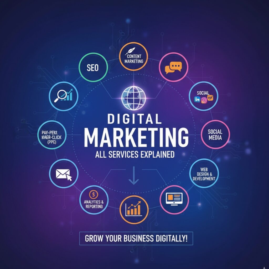 You want to take your business online? Our digital marketing agency helps you get seen, attract more customers, and boost your sales. We figure out what works best for your business—whether it’s getting higher on Google, making cool social media posts, or running smart ads. Let’s grow your business together!”